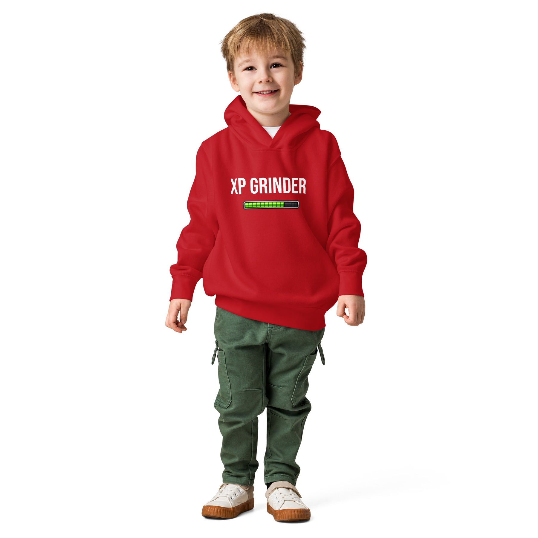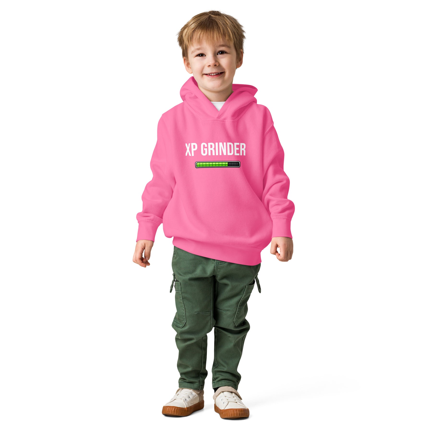 XP Grinder Toddler fleece pullover hoodie featuring a progress bar design in a cozy grey fabric.