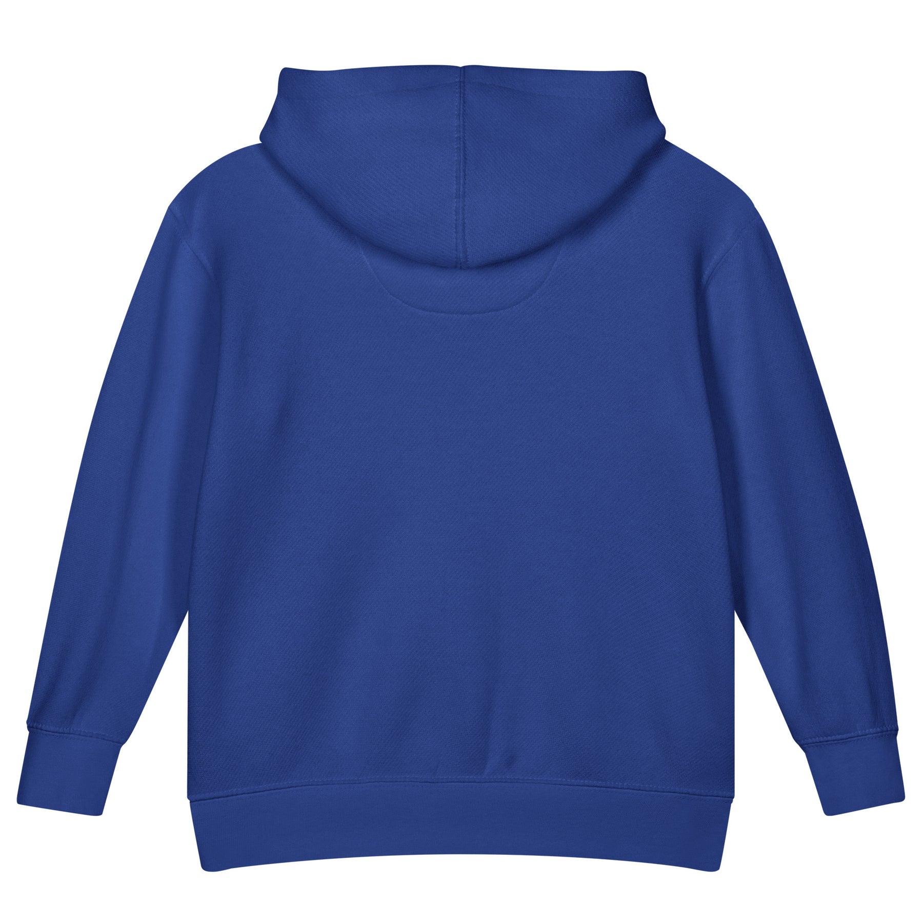 Back view of XP Grinder Toddler fleece pullover hoodie in blue color, showcasing cozy design and relaxed fit.