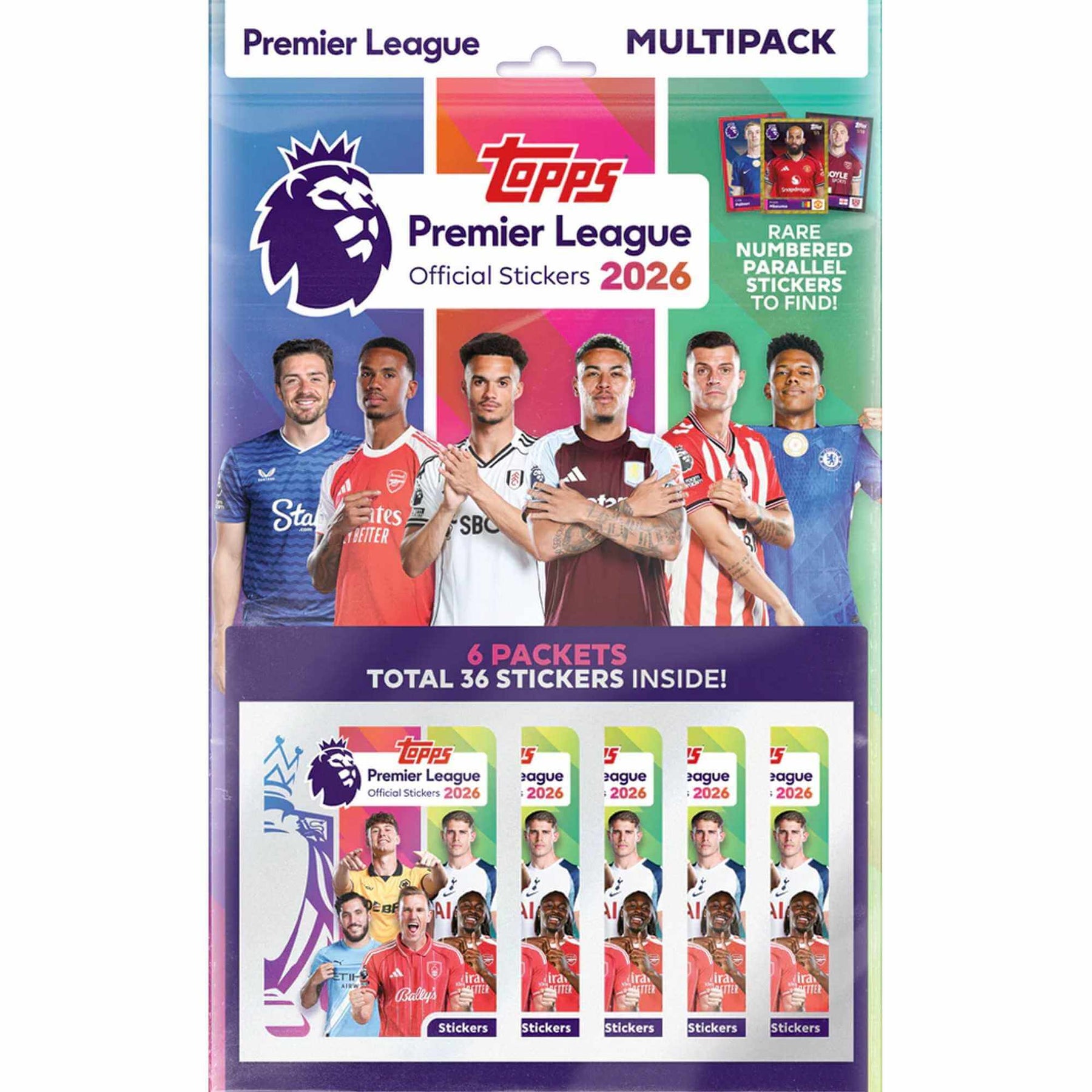 The Multipack contains 6 packets of stickers (36 stickers). Look out for rare numbered parallels inside lucky packets!