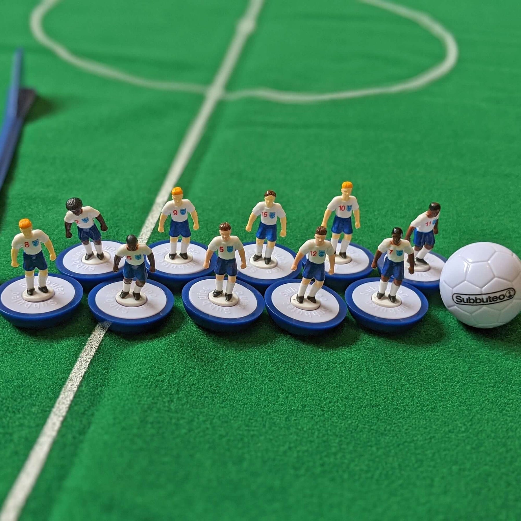 The Subbuteo players sport the England home kit and feature different hairstyles. These incredibly detailed players take the Subbuteo experience to a whole new level of realism.
